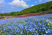 道の駅伊勢志摩に併設された観光農園。春はネモフィラ、夏はひまわり、秋はコスモスと、四季折々の花が楽しめます。ひろびろとした農園が、一面が花のじゅうたんに。