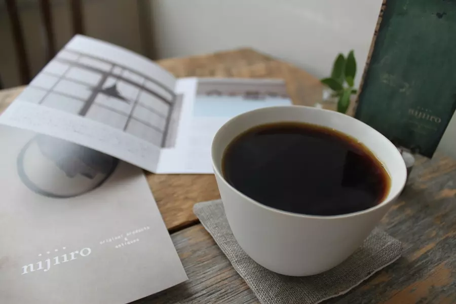 ギャラリーはカフェとしても営業しており、京都で焙煎されたこだわりのコーヒー豆で本格的なオリジナルコーヒーが楽しめます。お土産用も販売しています。また、大台町産のお茶もnijiiroオリジナル商品として販売しています。