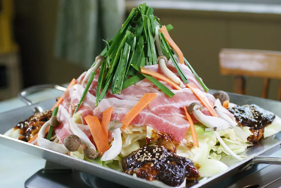 お肉と野菜がタワーになっている迫力の「亀山焼肉 鉄板みそなべ」もぜひ堪能してみてください。