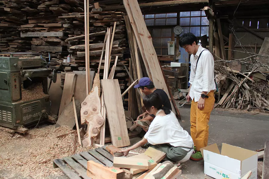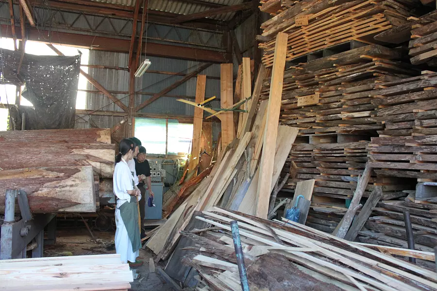 杉、ヒノキの針葉樹から広葉樹・街路樹・庭木・公園木・神社の木・果樹材など挽けるものは何でも挽いています。天然の素材から木材の加工、オーダーによる木工製品まで。