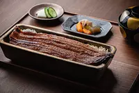 鰻料理専門店「うなぎ四代目菊川」は、良質のうなぎ一本丸ごとを蒲焼にした「一本うなぎ」で知られます。大きさも太さも極上の鰻を厳選し、皮をパリッと焼き上げても身質がフワッとやわらかい、贅沢な食感を実現。