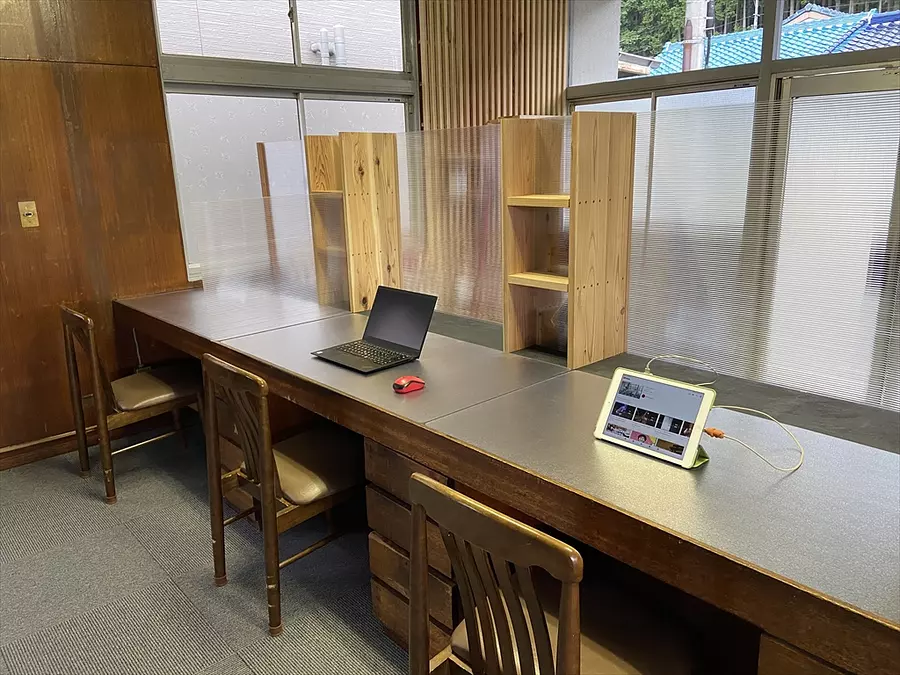 大台町に遊びに来て、急な仕事ができた時などに、パソコンを持参してレンタルスペースで快適にデスクワークすることができます。