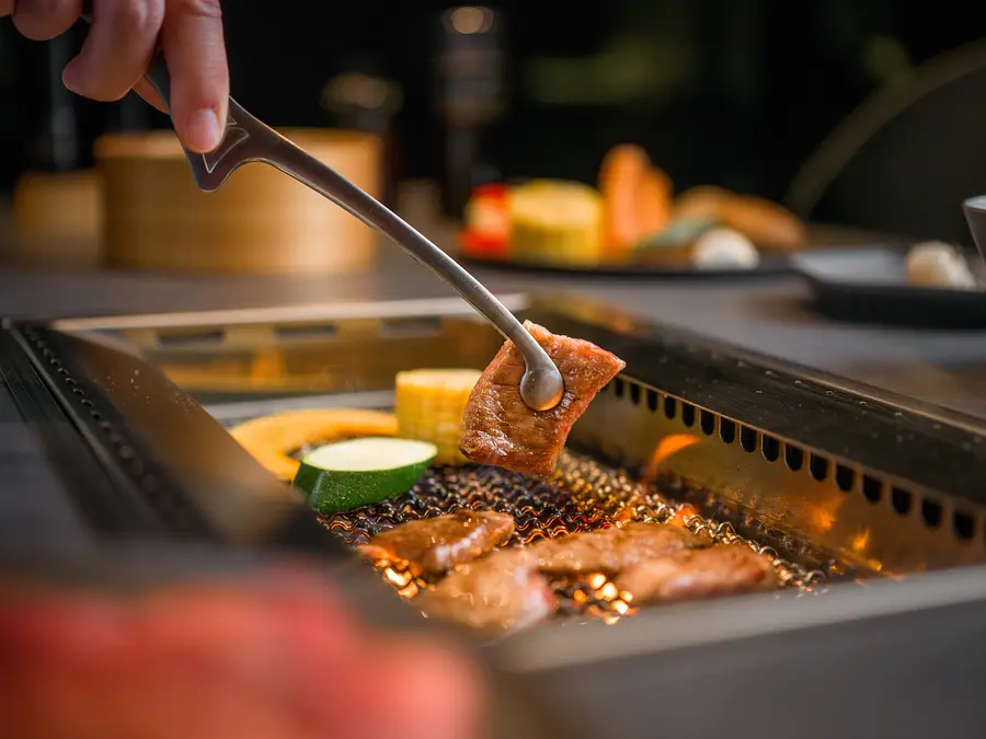 グリル付きテーブルの導入により、お部屋でもバーベキューメニューを座りながらお楽しみいただけるよう工夫しました。