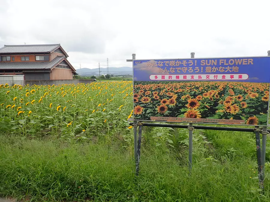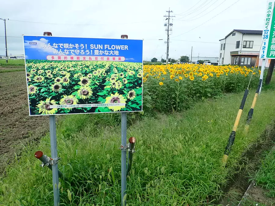 多面的機能支払交付金活動組織である「上区資源環境保全プロジェクト」が遊休農地を活用して整備されたひまわり畑。2025年の見頃は8月上旬頃からになる予想です。