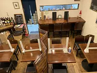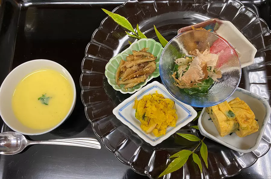 10席ほどの小さなお店で、骨董品の器などを使用しており、お料理とお酒を楽しんで頂けます。