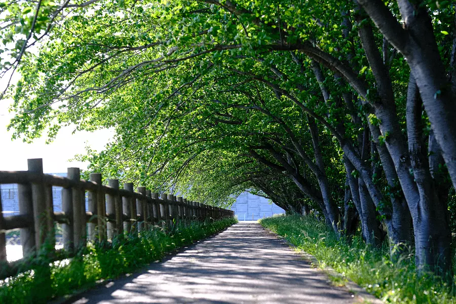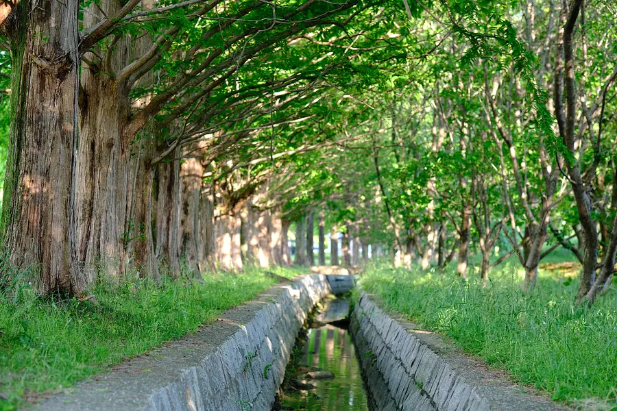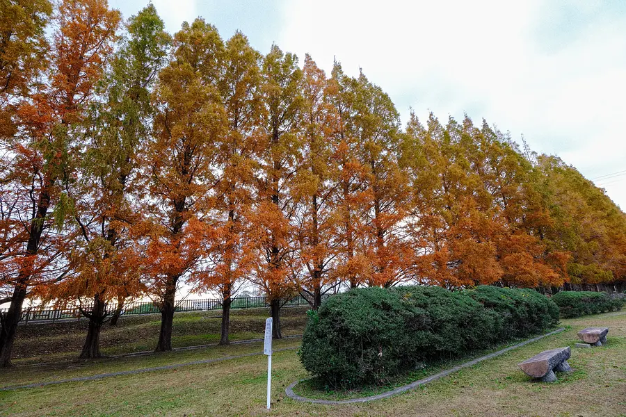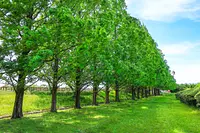 春は桜並木、初夏は新緑のメタセコイア並木が見どころ