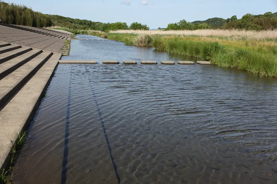 広さを確保した「芝生広場」「せせらぎ水路」等が整備されています。