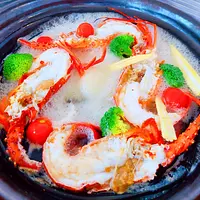 料理は旬のコースになっております。三重県鳥羽産の伊勢エビ、鮑、牡蠣を使ったコースはオススメです。