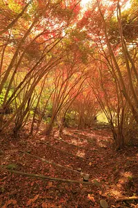 大台町下真手にある真手公園・丸山公園は、近年話題の紅葉スポット。丸山公園のドウダンツツジが続くトンネルは、地元で「トトロの森」と呼ばれています。