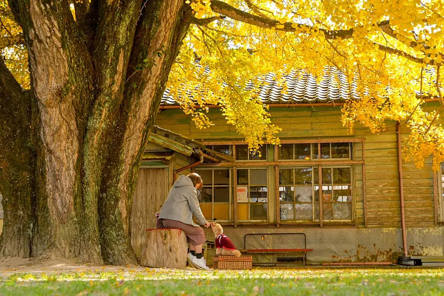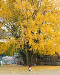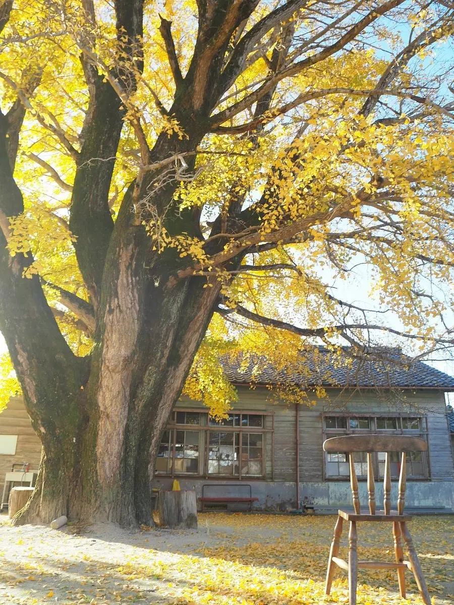 そこに寄り添うように育つ大イチョウの様子に、ノスタルジックな雰囲気が漂います。