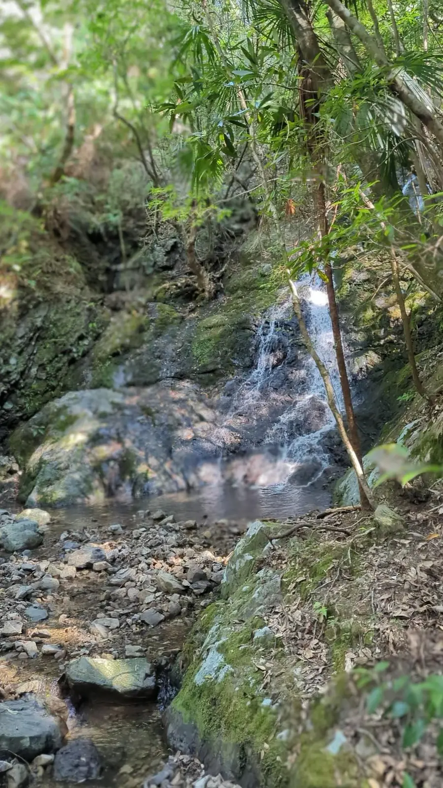 道しるべがないので事前に位置をよく見ておく必要はありますが、枯れた沢を進む滝への道はまさに秘境の雰囲気で感動します。
