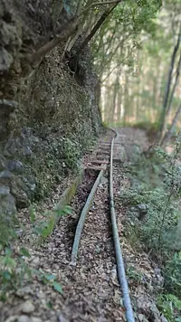 少し歩くと昔の水道配管と側溝があるので、これに沿って進むと滝が現れます。