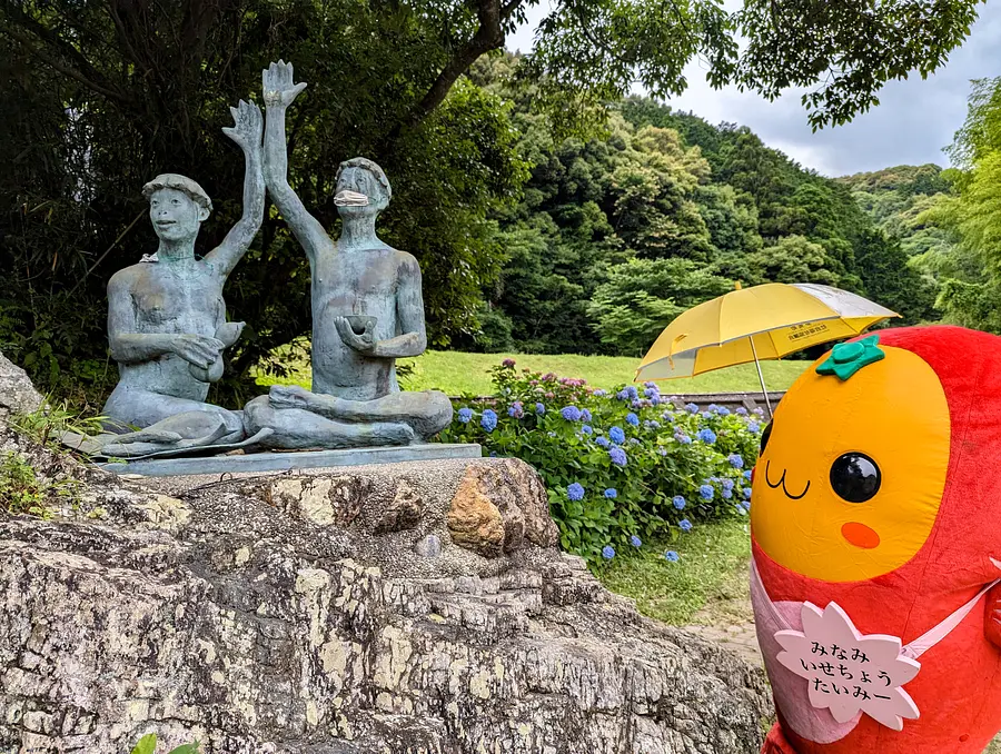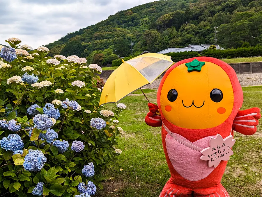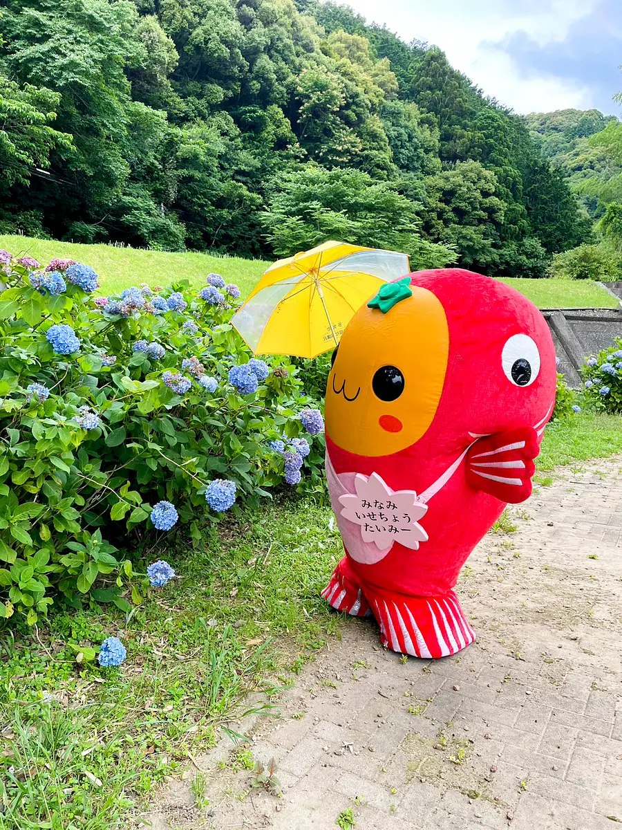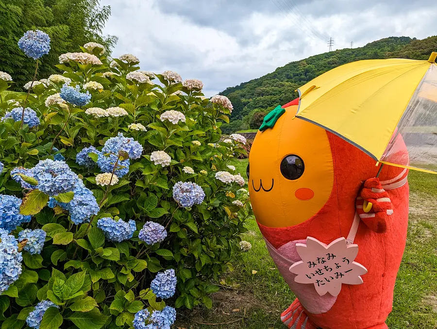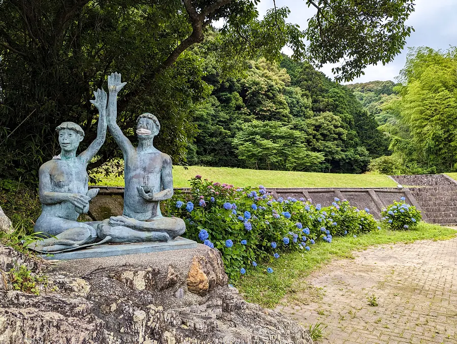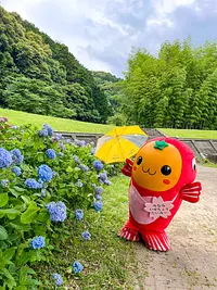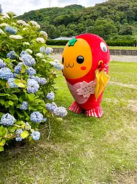 かっぱのモニュメントが印象的なあじさいスポット