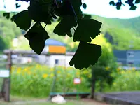 時期によっては金色になった大銀杏と一緒に、満開のコスモスをみることができます。