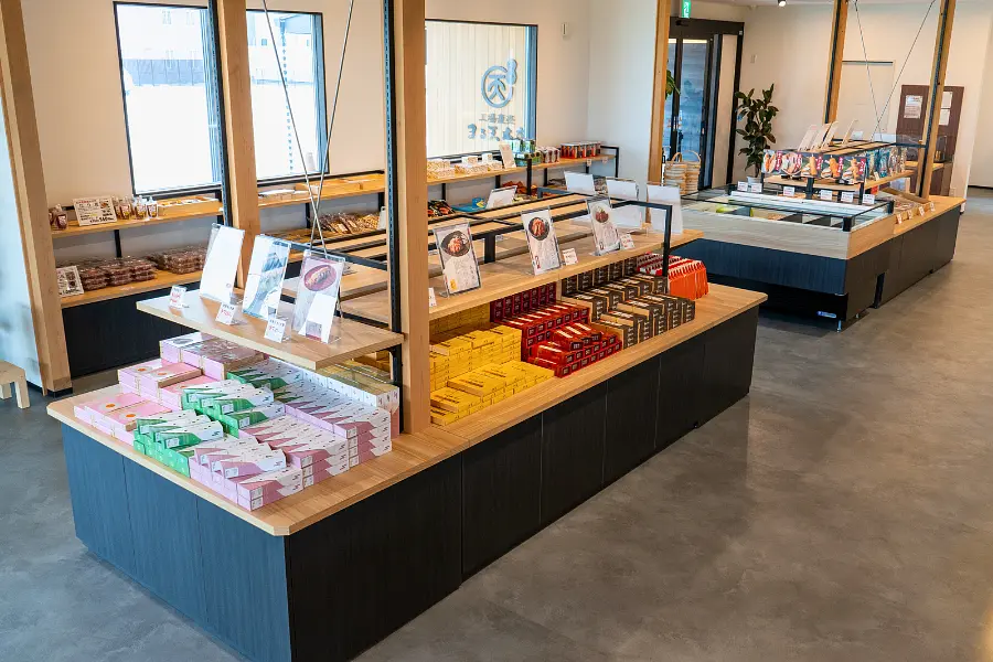 隣接する工場で製造する商品はどの店舗よりも出来立て。