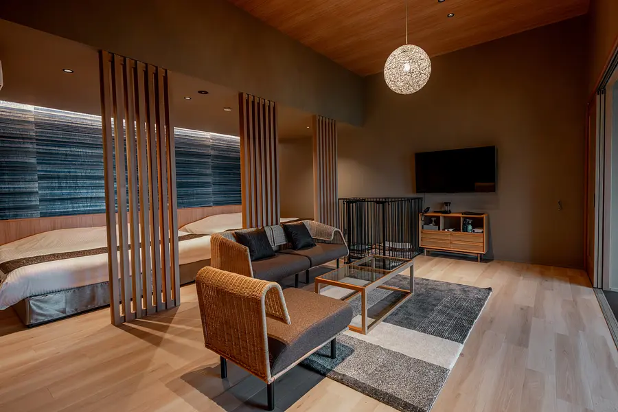 野寛は、全室離れ型客室でプライベート空間が守られており、全室個別にプライベートドッグランが設置されております。