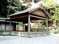 神社の説明板によれば、御鎮座は724年といわれており、桃山時代から江戸中期前後の能面、能衣装116点(県文化財)、能舞台(県文化財)があります。