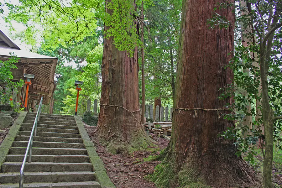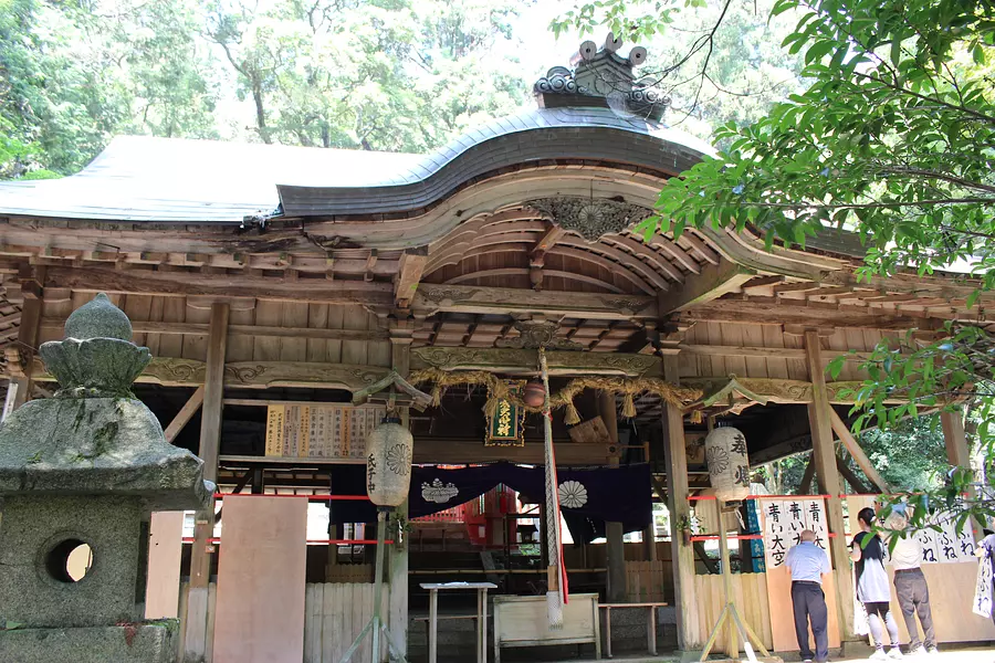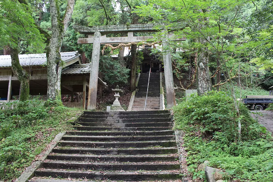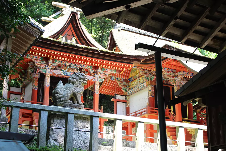 天正二年(1574年)建立。本殿、八幡社、春日社は、三棟とも彩色され、蟇股内の彫刻等桃山時代の特色をよく示していて、国の重要文化財に指定されている。