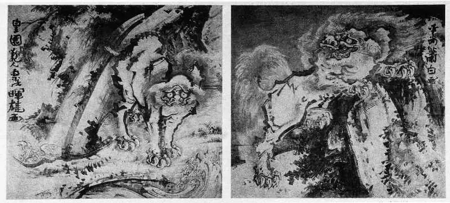 紙本墨画唐獅子図 附板絵着色杉戸絵