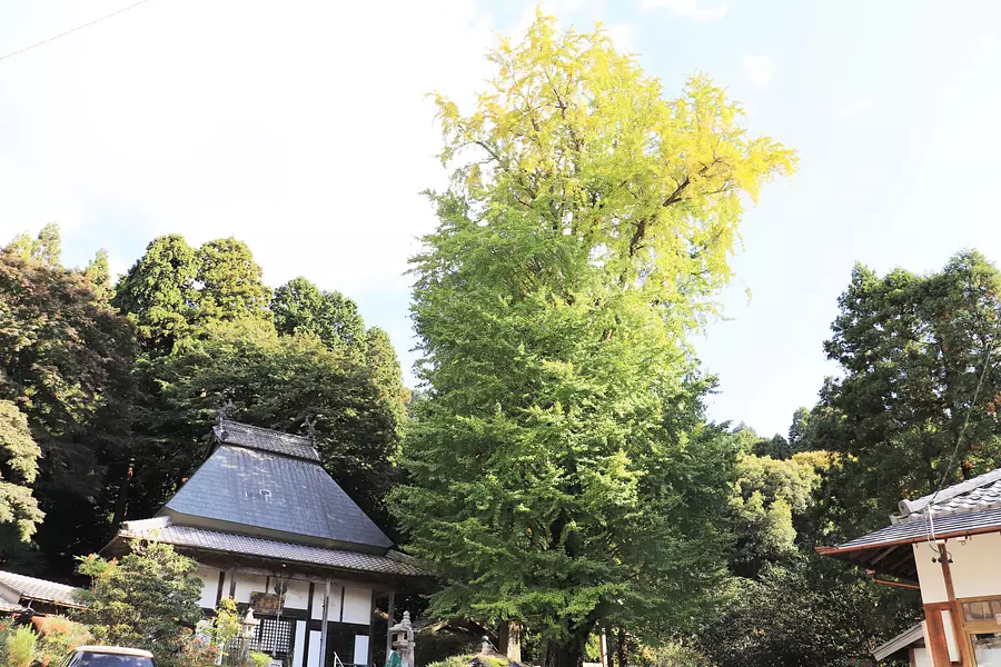 伝教大師開基と伝える黄檗宗のお寺です。古くは山頂にあり、七堂伽藍があって世人の信仰を集めていたが、天正の兵火により焼失しました。唯一焼失を免れた本尊十一面観音世菩薩が奉られている他、多数の寺宝を収蔵しています。参道周辺には石仏が並んでいます。境内には県天然記念物のオハツキイチョウの大木があり、黄金に色づくさまは見事です。また、寺周辺及び林道沿いには約500本の桜が植栽されています。