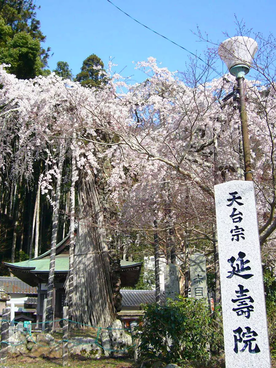 赤目四十八滝の登り口にあり、とくに石造灯篭は有名で国の重要文化財に指定もされています。樹齢300年を超すといわれている枝垂れ桜も毎年花を咲かせます。