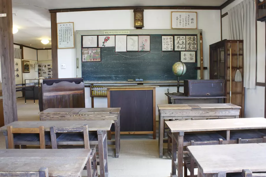 三重県指定文化財。現存する小学校舎として三重県下で最も古いもので寄棟造木造二階建て。二階正面のバルコニーが珍しく、大屋根中央には六角形平面の太鼓楼があります。2階には初等教育資料を展示しています。小学校の教室を使用することも可。