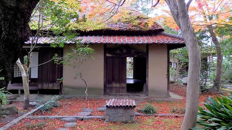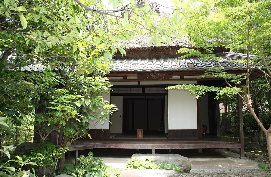 「蓑虫の音を聞きに来よ草の庵」の句にちなんで蓑虫庵と呼ぶようになりました。芭蕉五庵の中で唯一現存するもので、庭内にはお茶室が完備されています。
