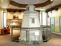 木造8角形の旧安乗灯台の3分の1のミニチュアや、光と音響で嵐を再現したコーナーもあります。