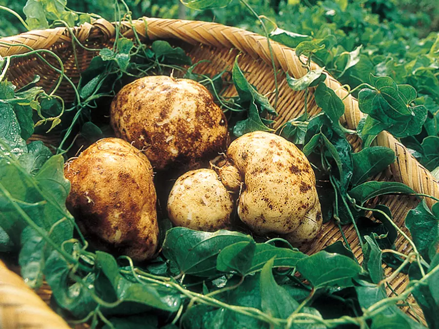 山芋の一種で温かい麦ご飯にすったとろろ汁をかけて食べるのが美味。
