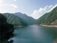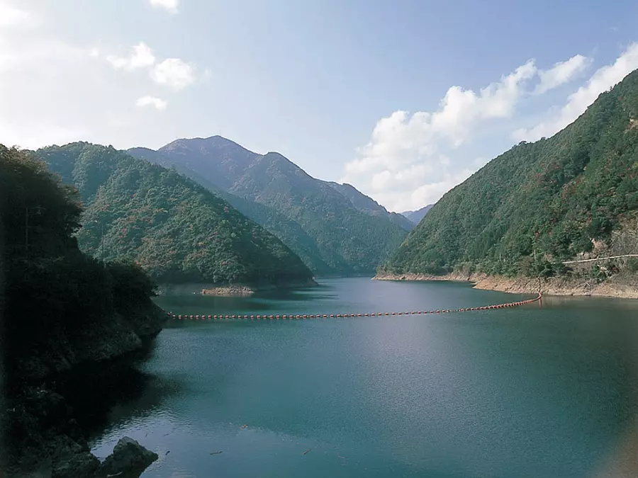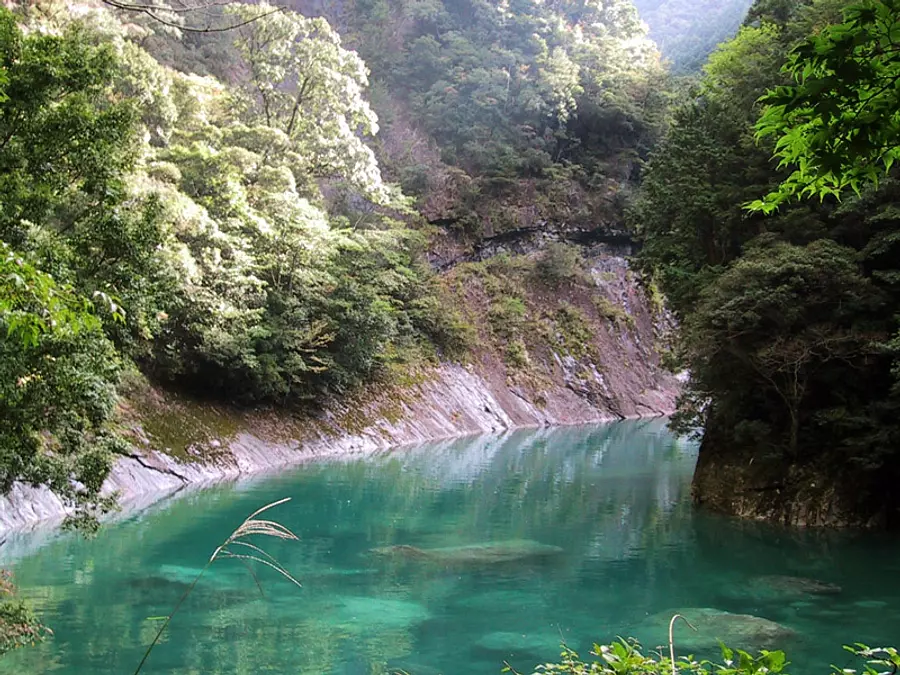 ダイナミックな岩の間をぬって流れ下る宮川。宮川上流漁業協同組合下の河川敷内は大台町のキャンプ指定地、水深が浅く流れがゆるやかなところもあり、水の透明感を感じて川遊びが楽しめます。