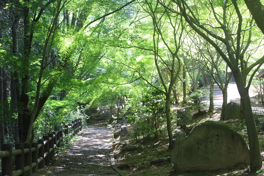 伊賀市旧上野街を一望できる景観にめぐまれた場所にあり、園内の小道をたどると四季を彩る樹木や草花、そして芭蕉翁句碑が迎えてくれます。