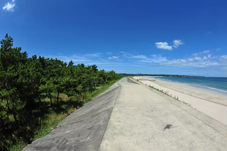 海水浴やサーフィンが楽しめる国府の白浜からほど近い施設。海水浴客やサーファー向けの駐車場やシャワーが整備されている。