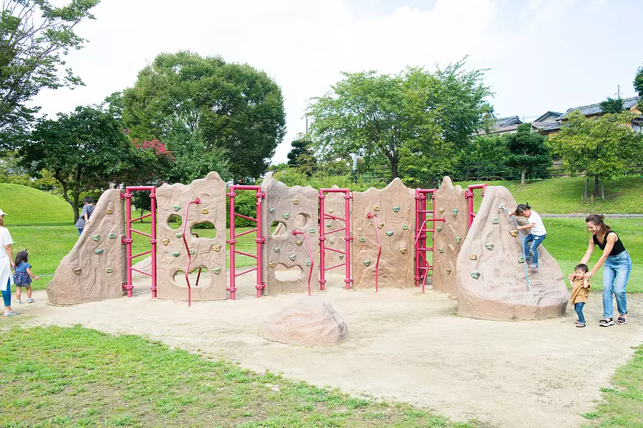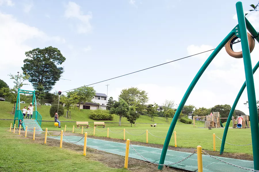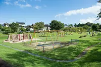 総面積12haの公園内には、淡緑色も鮮やかな芝生広場やパターゴルフ場、テニスコート、楽しい遊具がいっぱいの子供広場、春には花見客で賑わう桜並木、6月にはアジサイ、ウォータースライダーなどを備えた『遊水プール・鏡』などがあります。