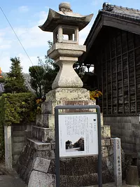 この追分には、道標と向かい会うように、天保13年(1842)に奈良までの宿屋連中の寄進によって道の東側に大型の常夜燈が建立された。