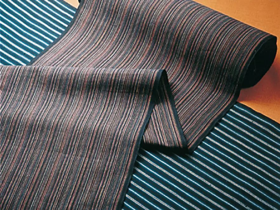 江戸時代、地域の農家の副業として始まり、津藩主藤堂高虎公の奨励より盛んに生産されました。紺木綿と縞木綿の2種類があります。伊勢木綿は先染め木綿ともいわれ、織る前に糸を染める特徴があります。