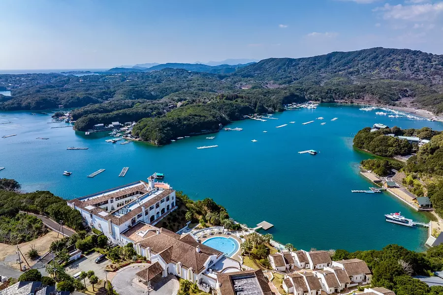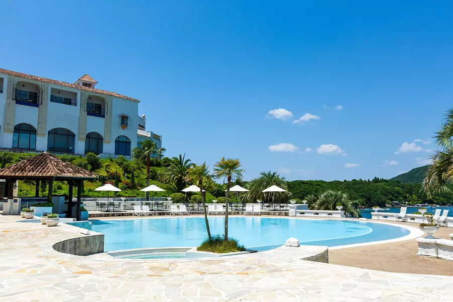 英虞湾の絶景に抱かれ、白壁と赤瓦の屋根が連なる南欧風の建築美が魅力のリゾートホテル