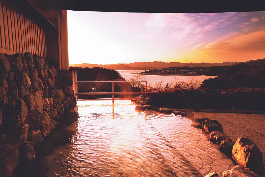 開放感あふれる大浴場、美しい海を見下ろす露天風呂は体もこころも癒してくれます。また、女湯には血行を良くして、余分な皮下脂肪をとる話題の塩サウナも。お風呂上りにくつろげる畳の休憩スペースもあります。