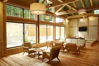 熊野杉を利用した木の香りただよう温泉棟には、内湯、露天風呂、立ち湯などがあり、源泉かけ流しの湯が来る人を癒します。豊富な湯量と良質な温泉で、日帰り入浴はもちろん、バンガローやロッジなどの宿泊施設も備えているので、宿泊しながらゆったりと温泉を楽しむ人も多いです。