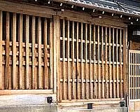 国道で東西に分断されるが、西矢田町には街道の面影を残す連子格子の家も建ち並び、竹内家には馬をつないだ輪が今も街道に面して残っています。