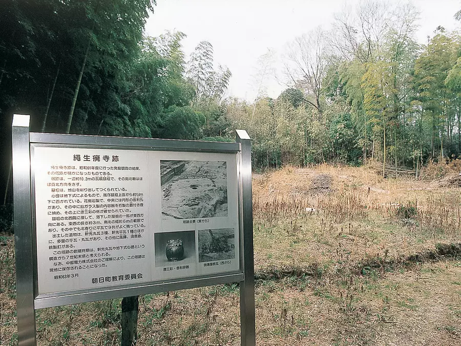 縄生廃寺は、江戸時代から「金光寺跡」として知られ、戦前には土取りの際に瓦片が多量に出土したと伝えられていました。