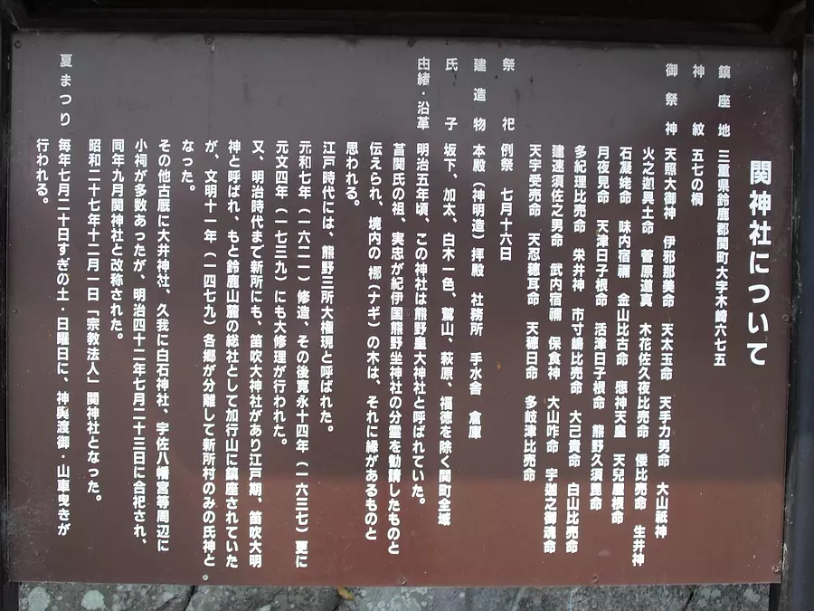 関氏の祖、実忠が紀伊国熊野坐神社の分霊を勧請したものと伝えられ、江戸時代には、熊野三所大権現と呼ばれ、明治五年頃には、熊野皇大神社と呼ばれていました。