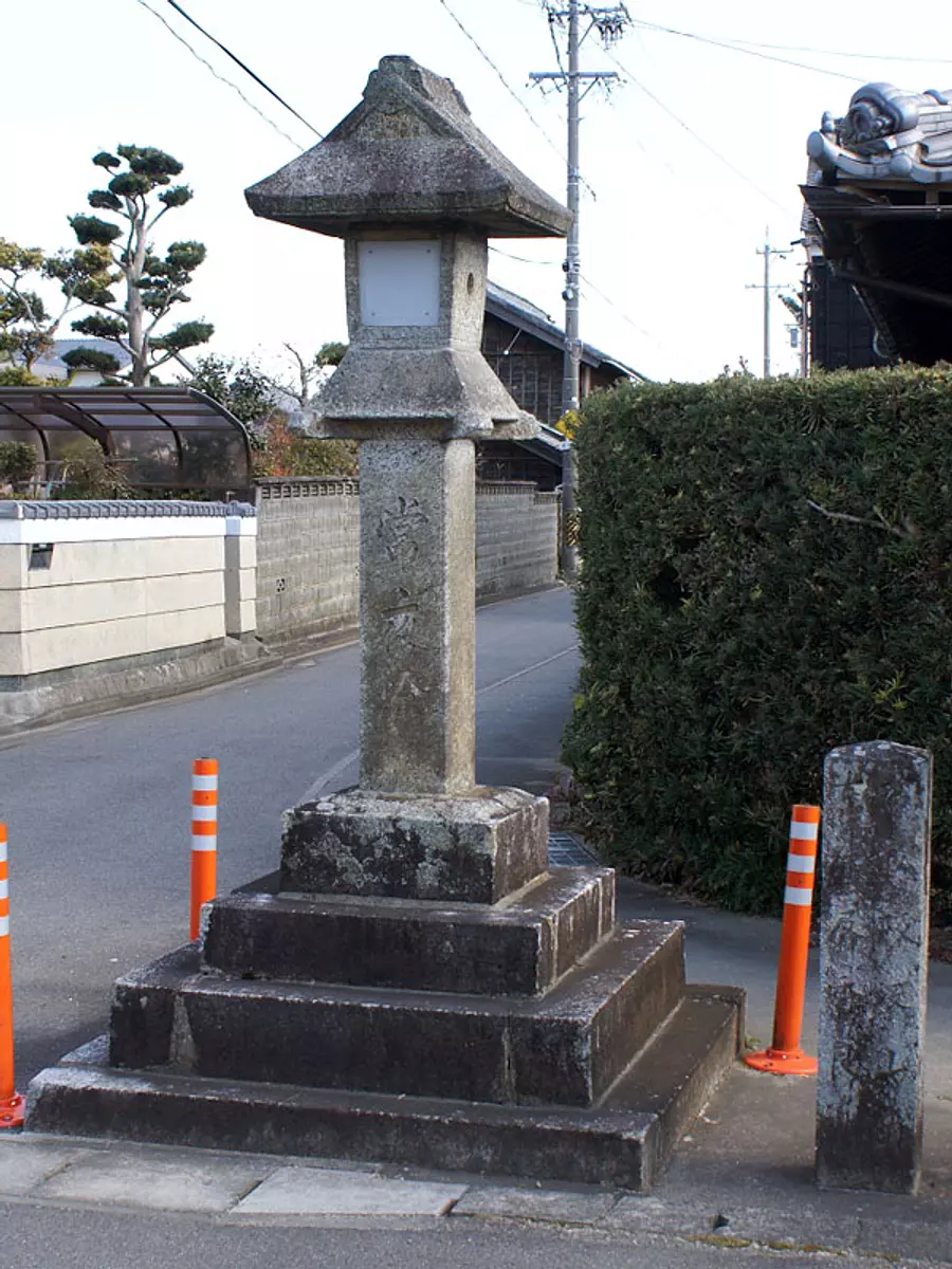 JR六軒駅近くの松阪市小津町にある伊勢神宮式の変形で笠は入り母屋型で高さ3メートル、良質の花崗岩で作られています。