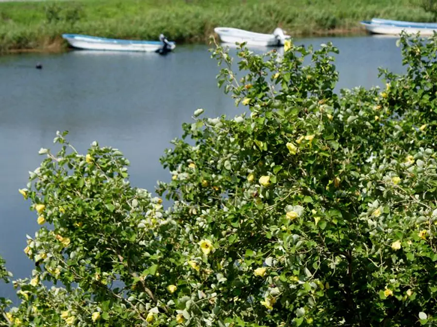 ハマボウとは海沿いを中心に生育し、夏になると黄色いハイビスカスに似た花を咲かせるアオイ科の木。碧川河口付近に群生し、7~8月ごろに花を咲かせます。