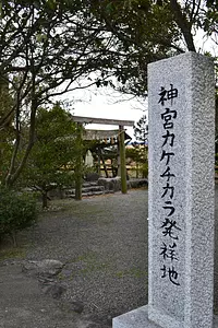一羽の真名鶴が根は一株で八握穂に茂っている稲を示し、倭姫命がそれを大神に捧げたという伝説があり、懸税(かけちから)/毎年10月に伊勢神宮で行われる神嘗祭で内垣に掛けられる稲束)の発祥の地とされ、記念碑が建てられています