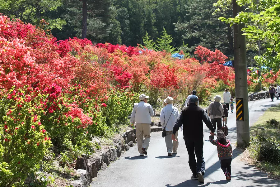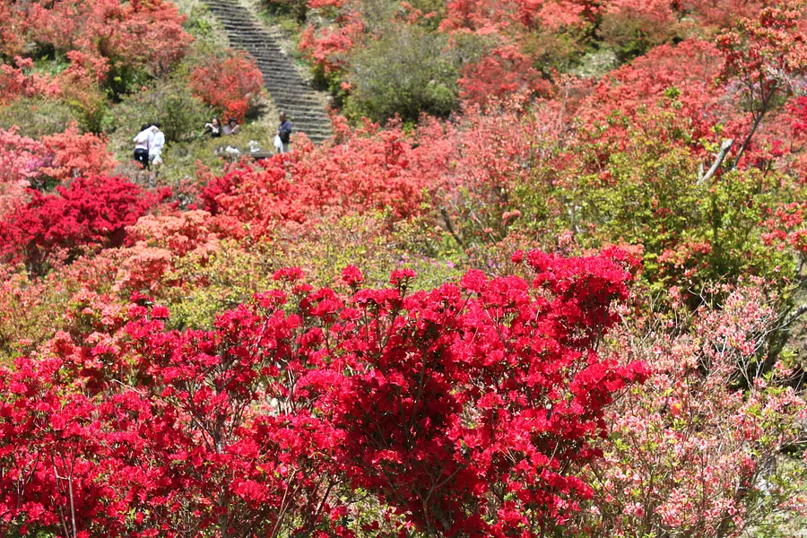 約5ヘクタールの山の斜面いっぱいに、1万株以上の自生つつじが咲き乱れる景観はみごとです。県の名勝地指定も受けています。