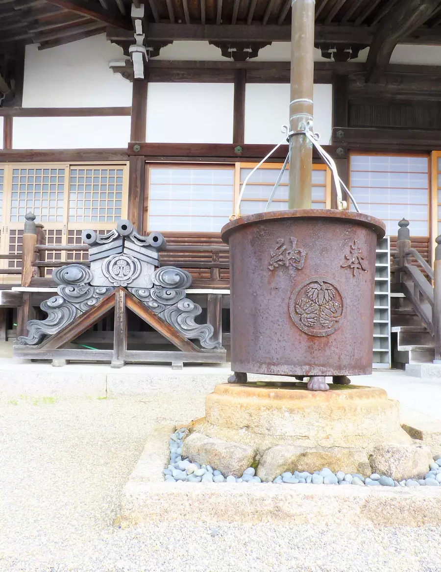 天正10年(1582)、本能寺の変の折、徳川家康は泉州堺から三河に帰国の途中の6月2日、当寺で一泊しました。家康はその時のお礼に、田畑や山林を与え、葵紋の使用も許したといわれています。