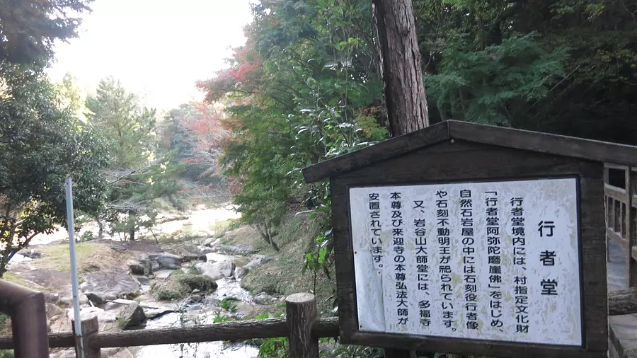 役行者を大峯山に勧請して作られたお堂。自然石の岩屋の中に石刻の役行者と不動明王が祀られています。秋は紅葉がとてもきれいです。