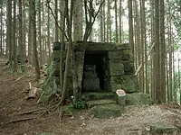 通り峠の木立の中に石積みの石室があり、その中には左腕に赤子を抱いた石仏が祀られている。地元では「子安さん」と呼ばれている。