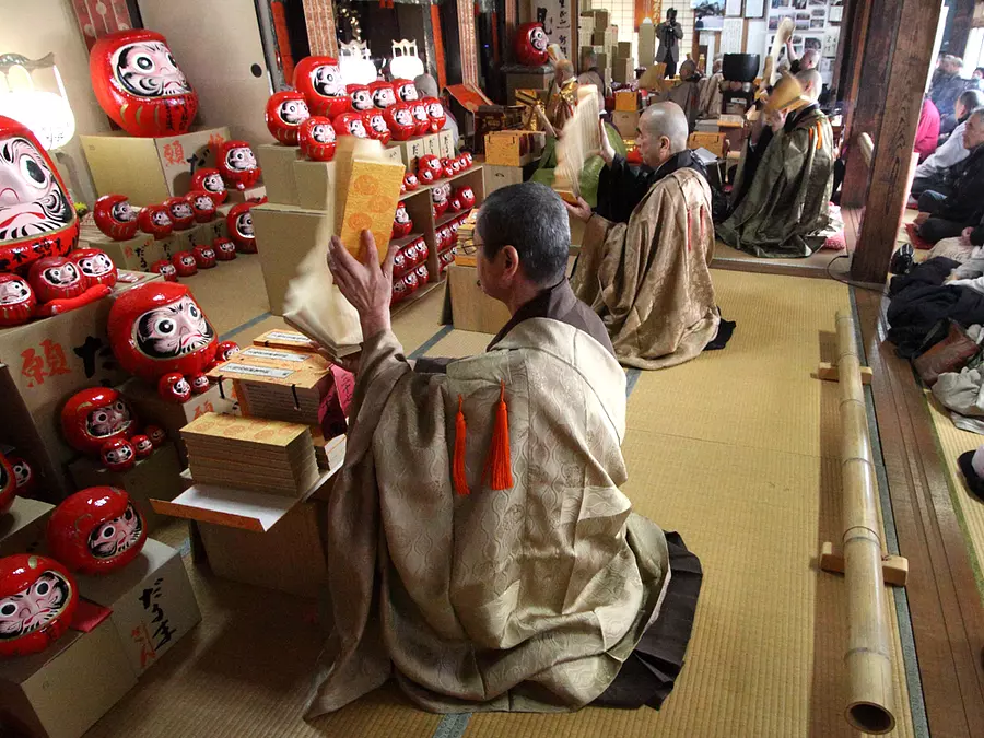 毎年2月11日に願いを込めてだるまの方眼を開け、願いの叶っただるまは、10月5日に消姿大供養が行なわれ、そのときに焚かれる「満願の火」は、縁起がよいとされています。