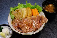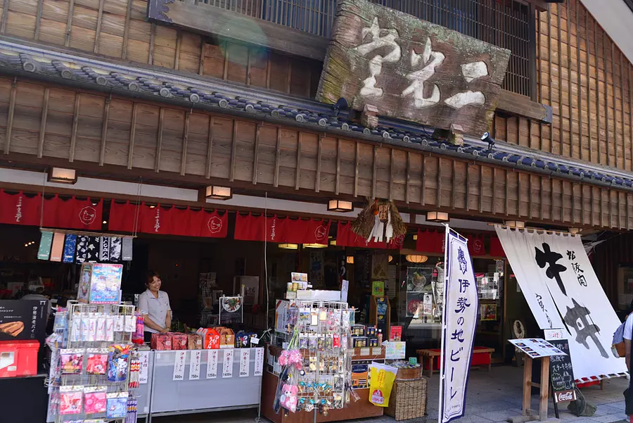 伊勢神宮内宮門前町の「おはらい町」にある老舗土産物屋「二光堂」。併設されるお店「寶来亭」の、とろけるようにやわらか~い松阪肉をご飯の上に豪快に乗せた「松阪肉 寶来亭ステーキ牛丼」は絶品!秘伝の醤油ダレはご飯との相性も抜群です。店頭には松阪牛の「牛串」「コロッケ」「肉まん」など、参道で食べ歩けるメニューも。